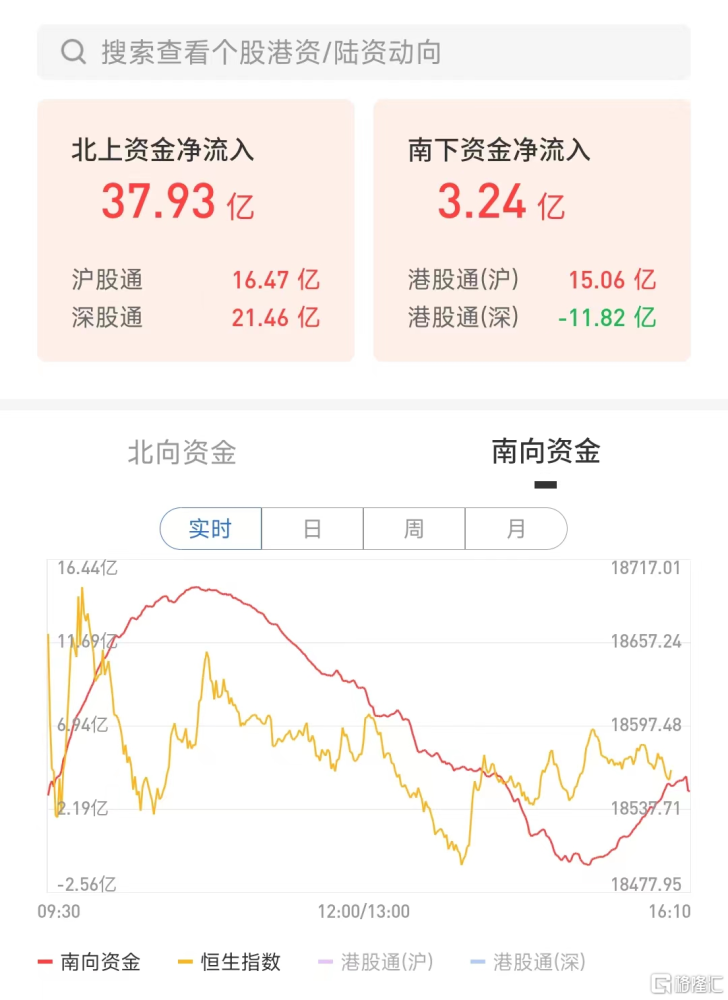 南向资金方面,南下资金净流入3.24亿港元,其中港股通(沪)净流入15.06亿港元,港股通(深)净流出11.82亿港元。