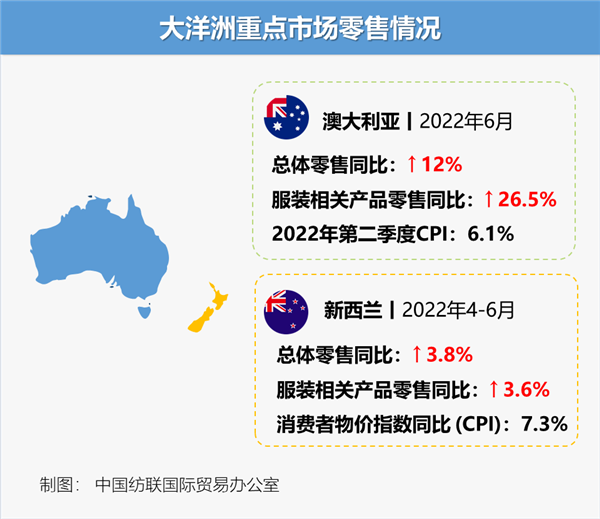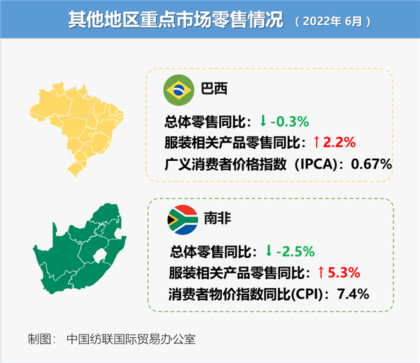 受俄乌战争和相关制裁导致的全球食品和燃料价格上涨影响,6至7月,亚洲多个国家通胀压力加剧,服装类产品零售增速放缓。
