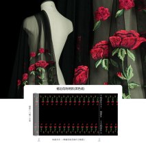煊缎 网纱面料 米色 黑色蕾丝刺绣布玫瑰绣花软纱布料半裙服装布艺 1号 黑色裙边款