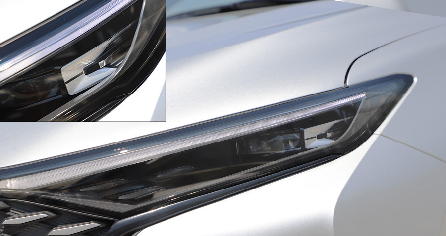灯组设计部分,前LED日行灯以及后LED行车灯均采用贯通式设计,整体点亮后精致度和辨识度很高。特别是前大灯组,整个灯组扁平紧凑,上方为LED日行灯,内部则为非常精致且小巧的主灯组,为远近光一体式设计,加上灯组前后的装饰搭配,体现出了长安品牌的超高的制造水准。