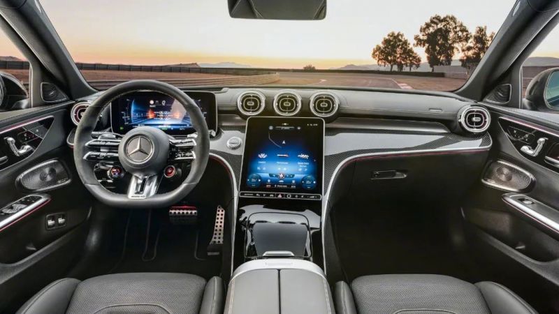 后轮转向系统也在新款 C63上搭载,最高反向2.5度,同向0.7度。碳纤维制动器为标配,同时配备再生制动系统,电动机能够以高达 150 kW 的速率快速回收能量。