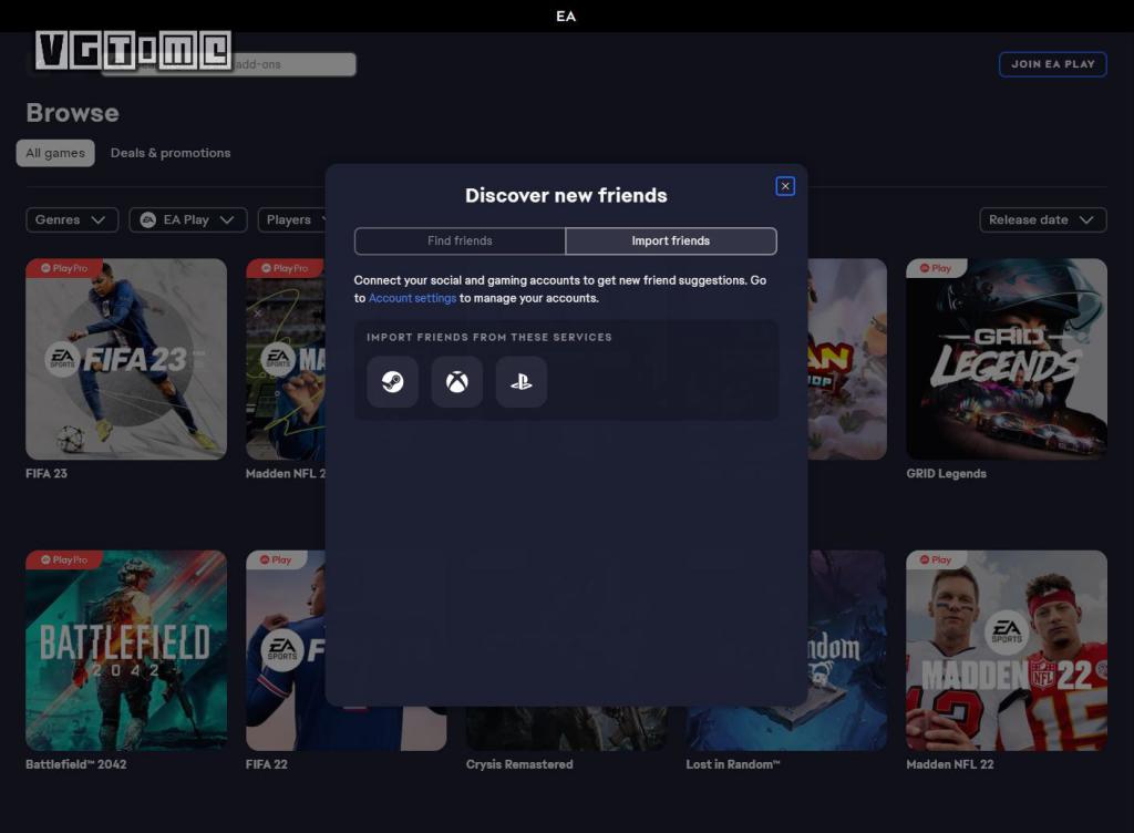 玩家可以将 EA 帐号连结到其他平台与服务(例如 Steam、Xbox 和 PlayStation)来建立好友名单。